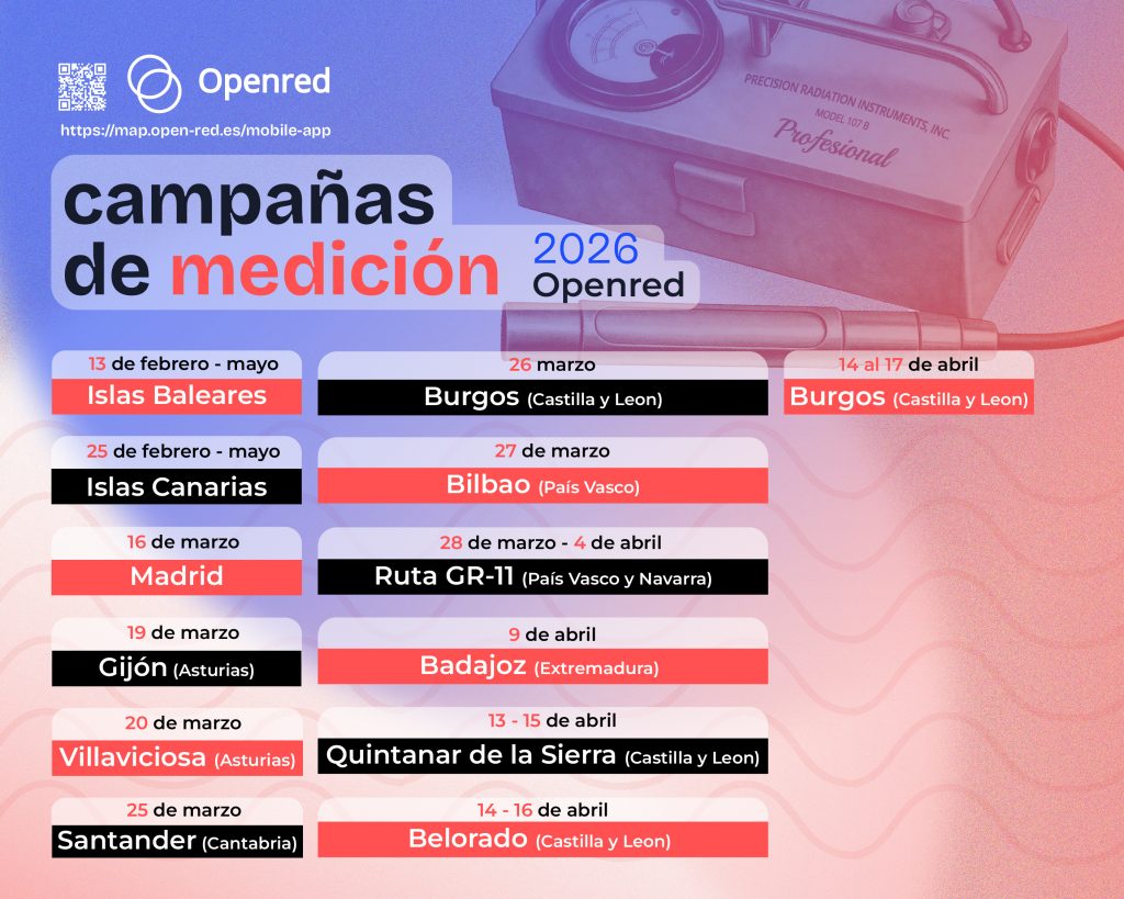Openred continúa su despliegue por todo el territorio nacional con el propósito de concienciar sobre la importancia de la protección radiológica y recopilar datos precisos sobre el terreno. Actualmente, el proyecto ya ha confirmado trece campañas de medición en distintos puntos de España.