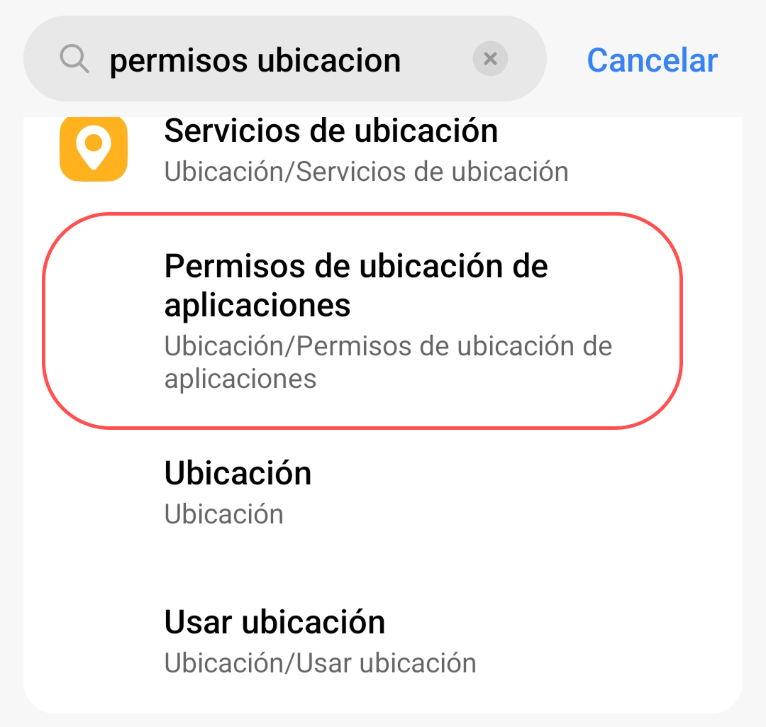 2.1 Busca en ajustes del movil “Permisos de ubicación de aplicaciones”