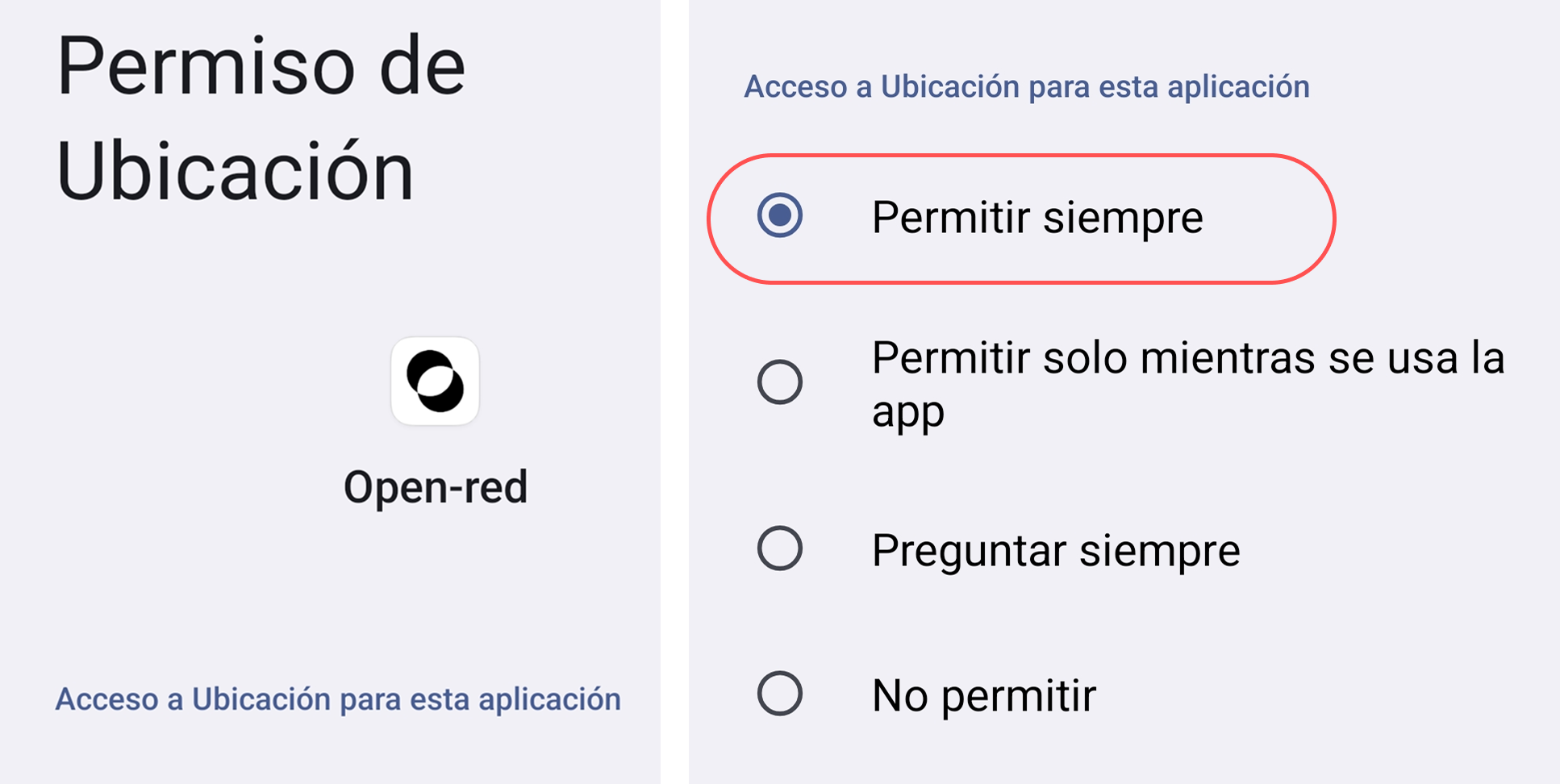 2️.2 Busca la App Open-red y selecciona “Permitir siempre”