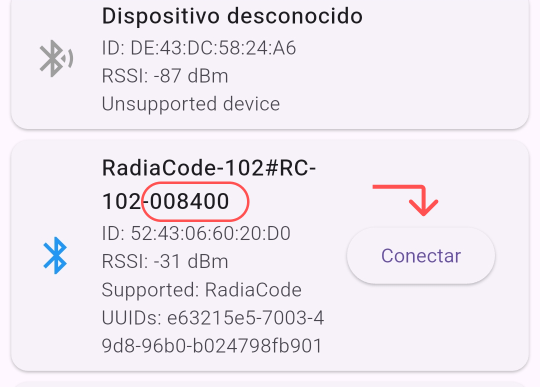 4.3 Busca y conecta tu RadiaCode, fíjate en que coincidan los cuatro últimos números que también tienes en el reverso de tu RadiaCode”
